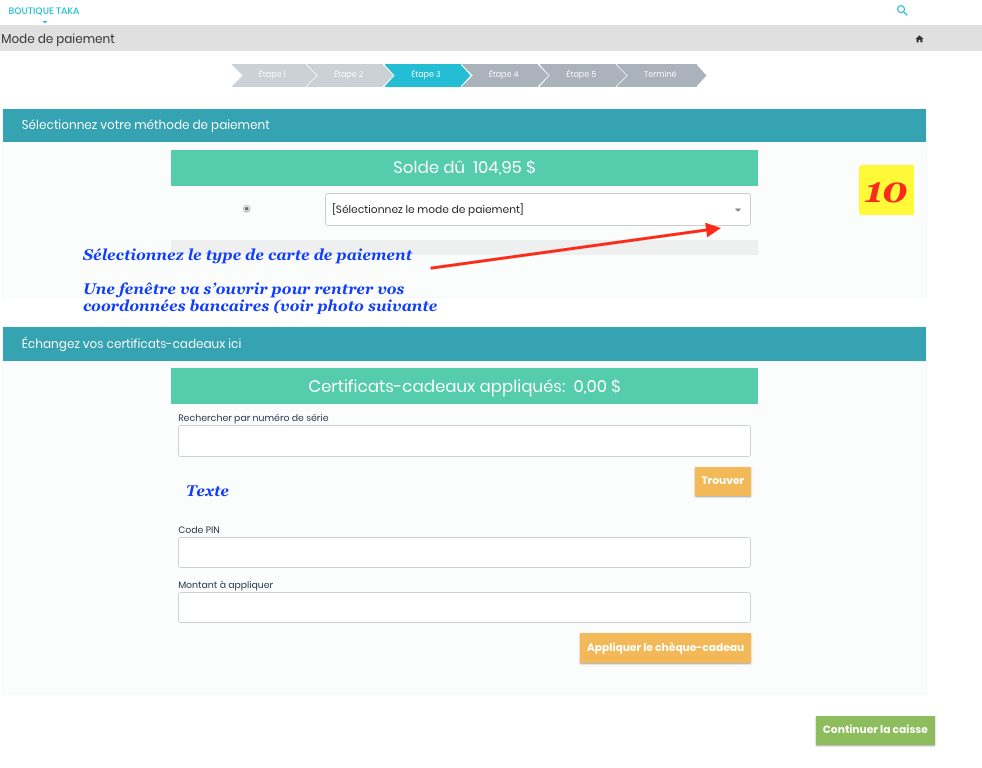 Ensuite, pour passer votre commande, cliquez sur l'onglet